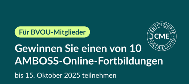 Jetzt bis zum 15.10.2025 mitmachen: Teilnehmen können alle BVOU-Mitglieder, die ihren AMBOSS-Mitgliedervorteil bereits aktiviert haben oder diesen bis zum Ende des Teilnahmezeitraums aktivieren und sich für die Verlosung anmelden.