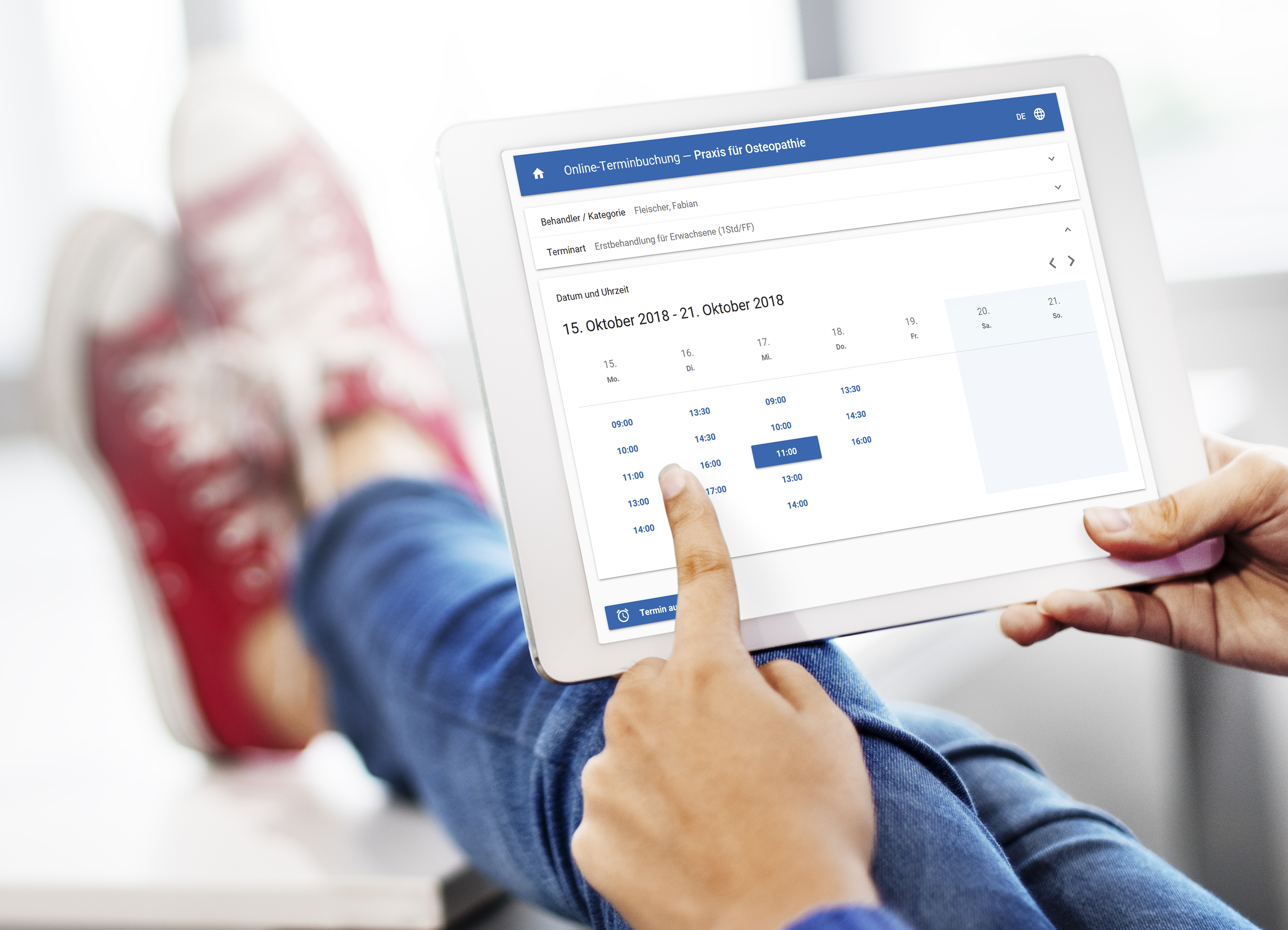 Hands using a mockup tablet with feet up in the background Published on 15.10.2019 in BVOU-MitgliedervorteileVolle Auflösung (4213 × 3042) ← Vorheriges Nächstes → Hands using a mockup tablet with feet up in the background